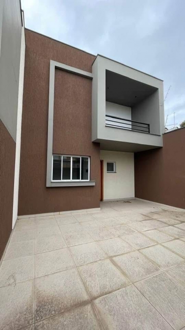 Sobrado com sala ampla, cozinha no estilo americana, lavabo, duas suítes uma com varanda e vaga para até 2 carros.